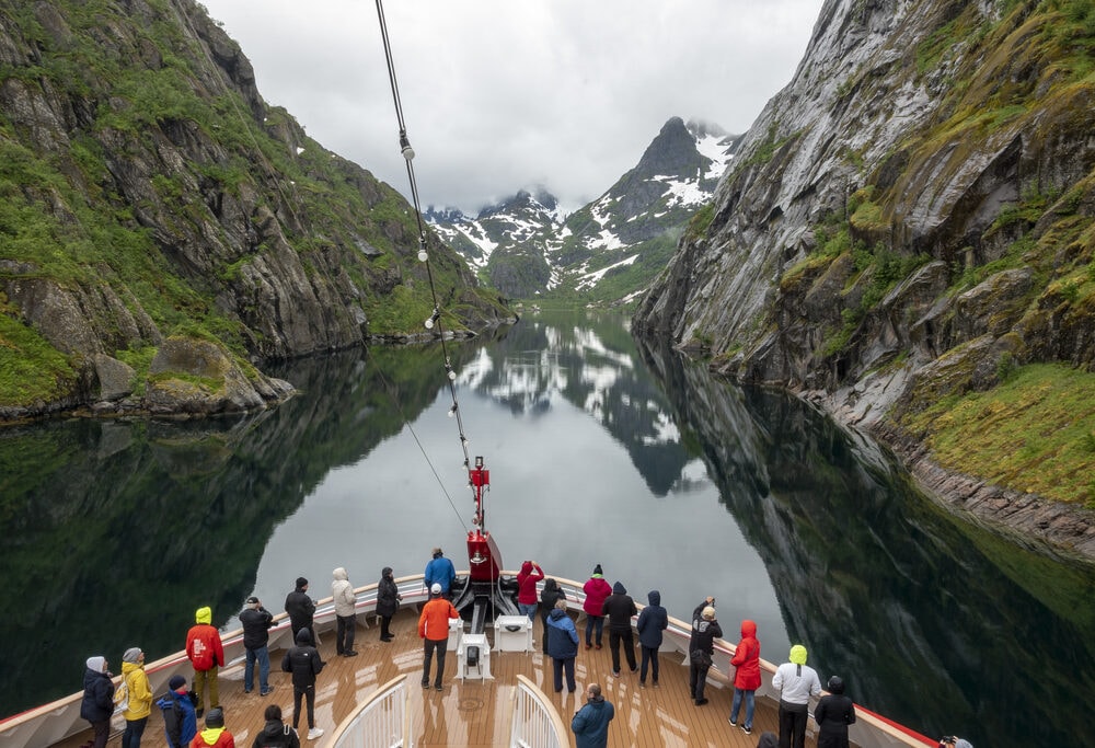 Start dagen med en busstur fra Svolvær til Hurtigrutens fødested, og opplev en naturskjønn fergeoverfart mellom Lofotøyene og Vesterålen. Besøk det nyåpnede Hurtigruten-museet i Stokmarknes for en selvstyrt tur. Utforsk Stokmarknes og Hadseløya i ditt eget tempo, før du går om bord i Hurtigruten for en uforglemmelig seilas tilbake til Svolvær gjennom Trollfjorden. Denne turen byr på digitale fortellinger via Arctic Route Story-appen og mulighet for middag ombord på Hurtigruten.