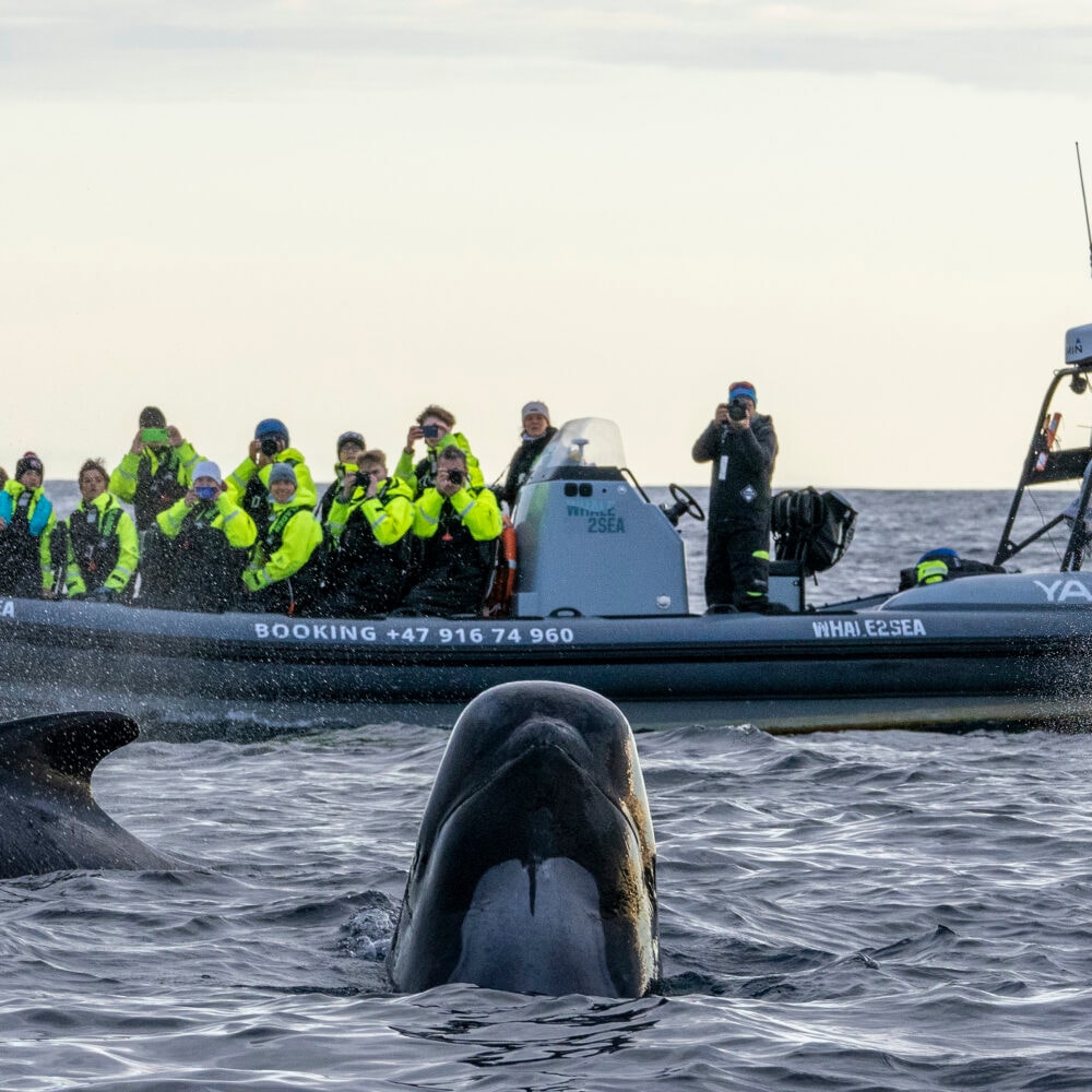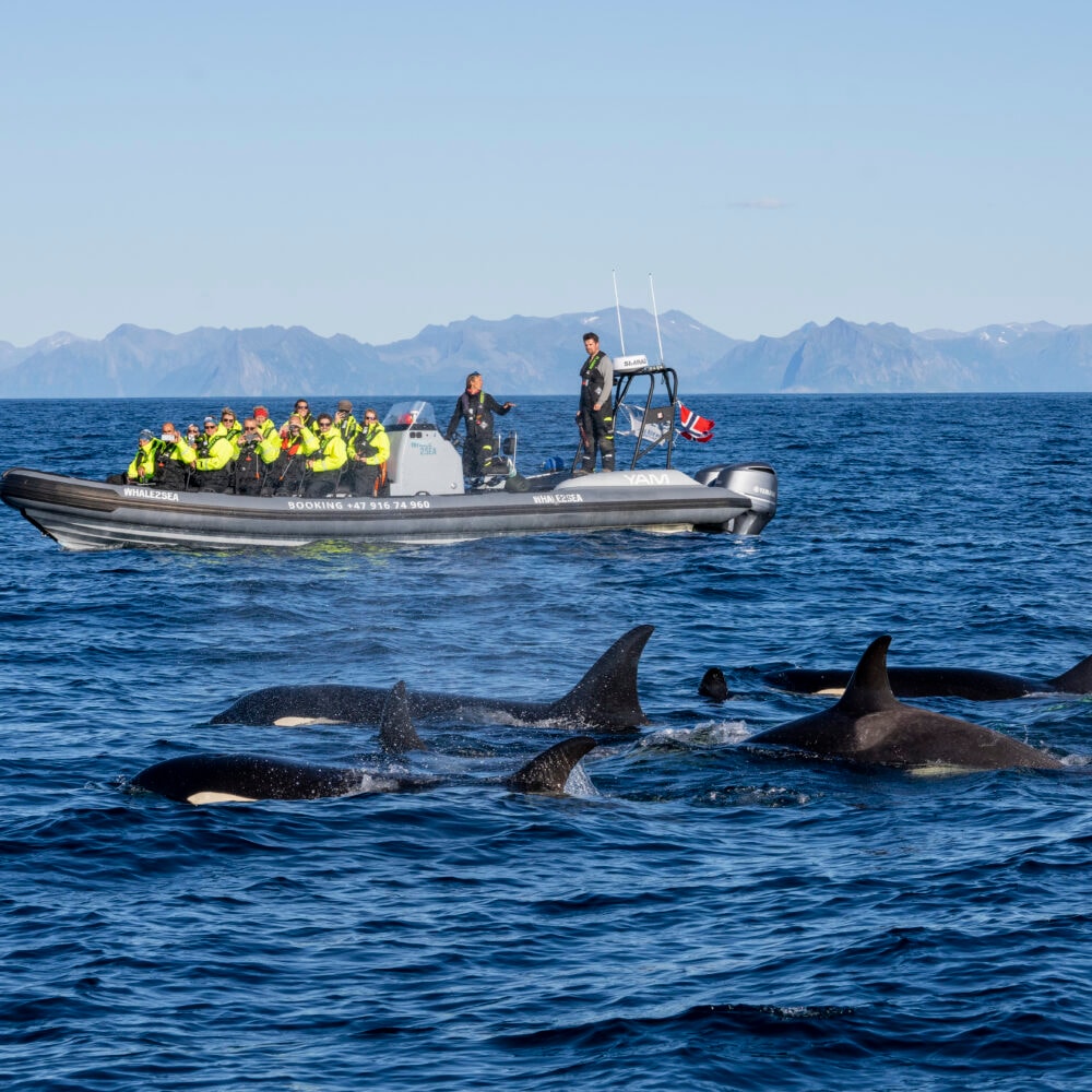Hvalsafarien tar deg med ut på det åpne hav for å møte noen av de mest imponerende skapningene på planeten. Fra den robuste RIB-båten, kan du forvente å se spekkhoggere og spermhvaler som beveger seg med ynde gjennom vannet. Dette er en sjelden mulighet til å observere disse majestetiske dyrene på nært hold, i deres naturlige miljø, ledet av erfarne guider som deler sin kunnskap om hvalenes liv og oppførsel.